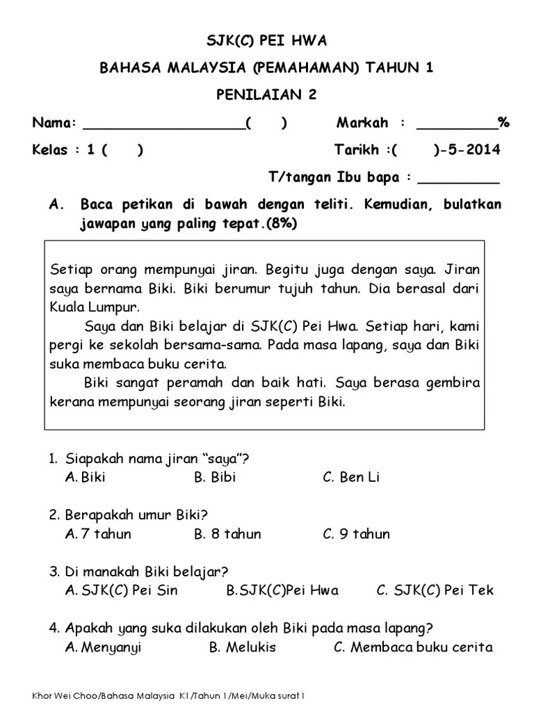 Kemahiran ini sangat penting untuk menjawab soalan bahagian a, kertas pemahaman. Soalan bm bahasa melayu pemahaman tahun 1 . 1 kamu hendak pergi ke… 6 ayam itu makan padi ______ di rumah.